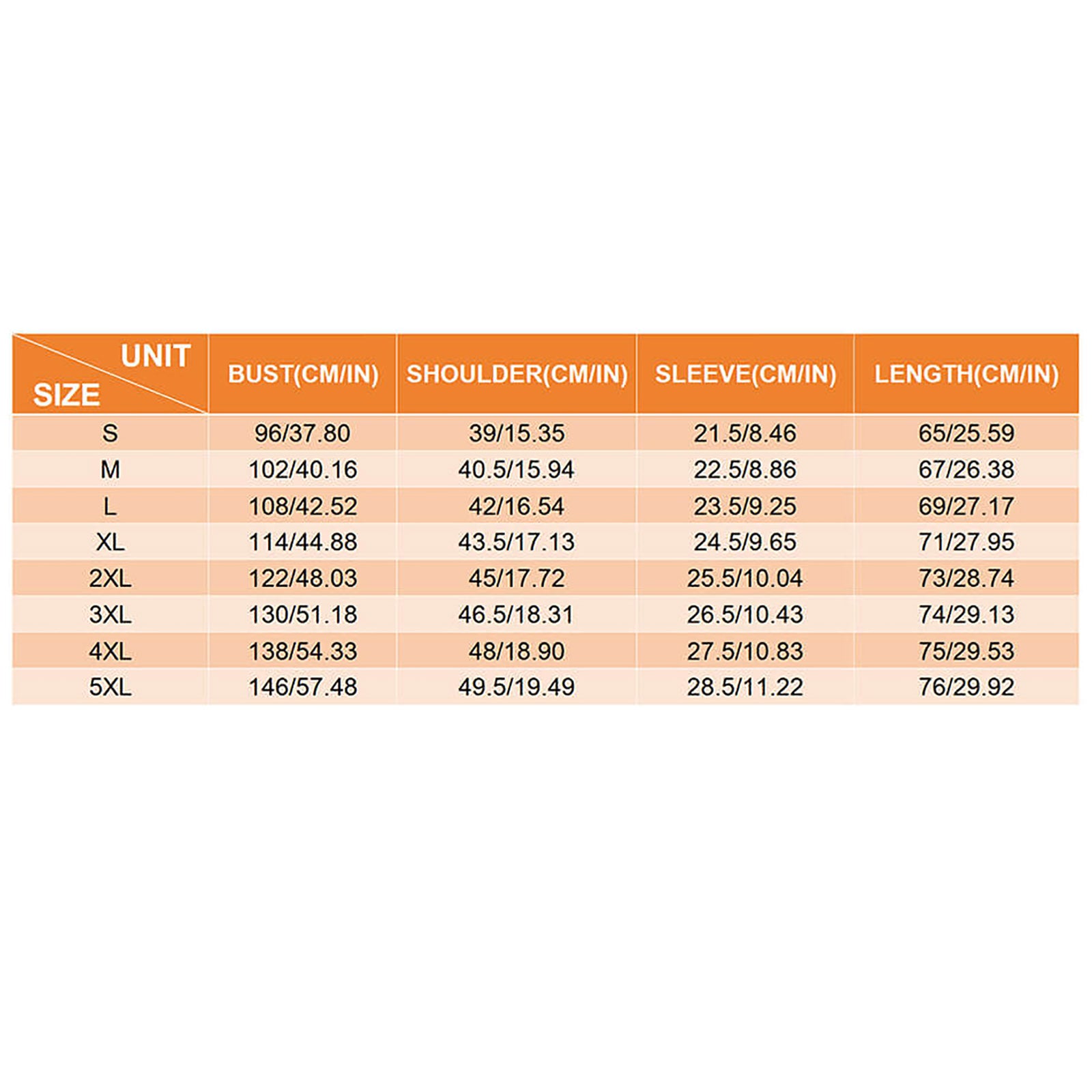 5XL | 146/57.5 | 49.5/19.5 | 28.5/11.2 | 76/29.9 |