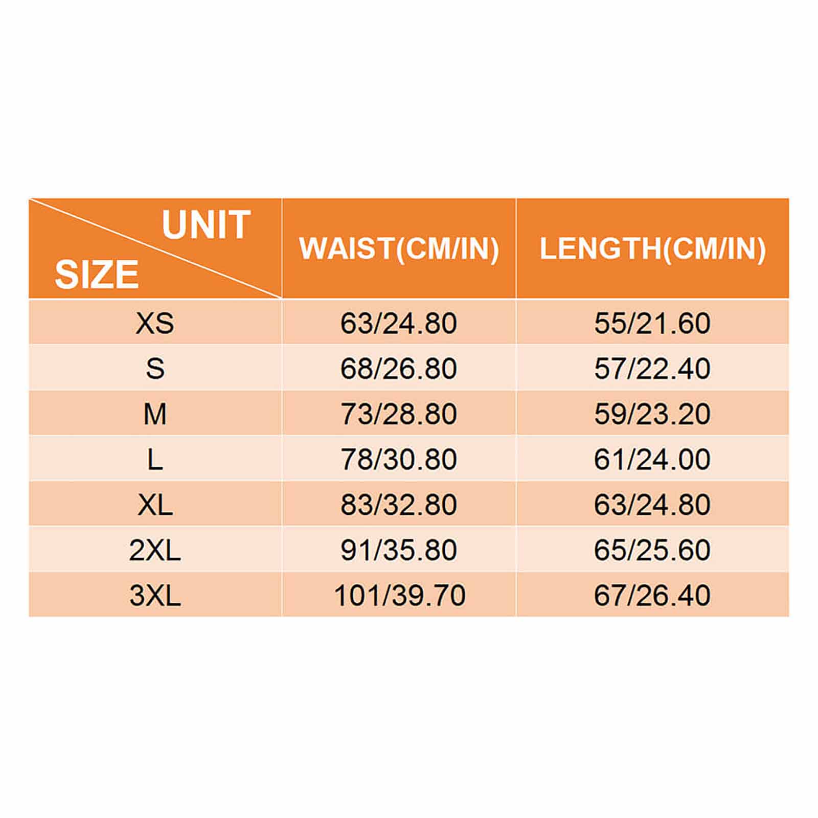 サイズ | ウエスト (cm/in) | スカート丈 (cm/in) |
