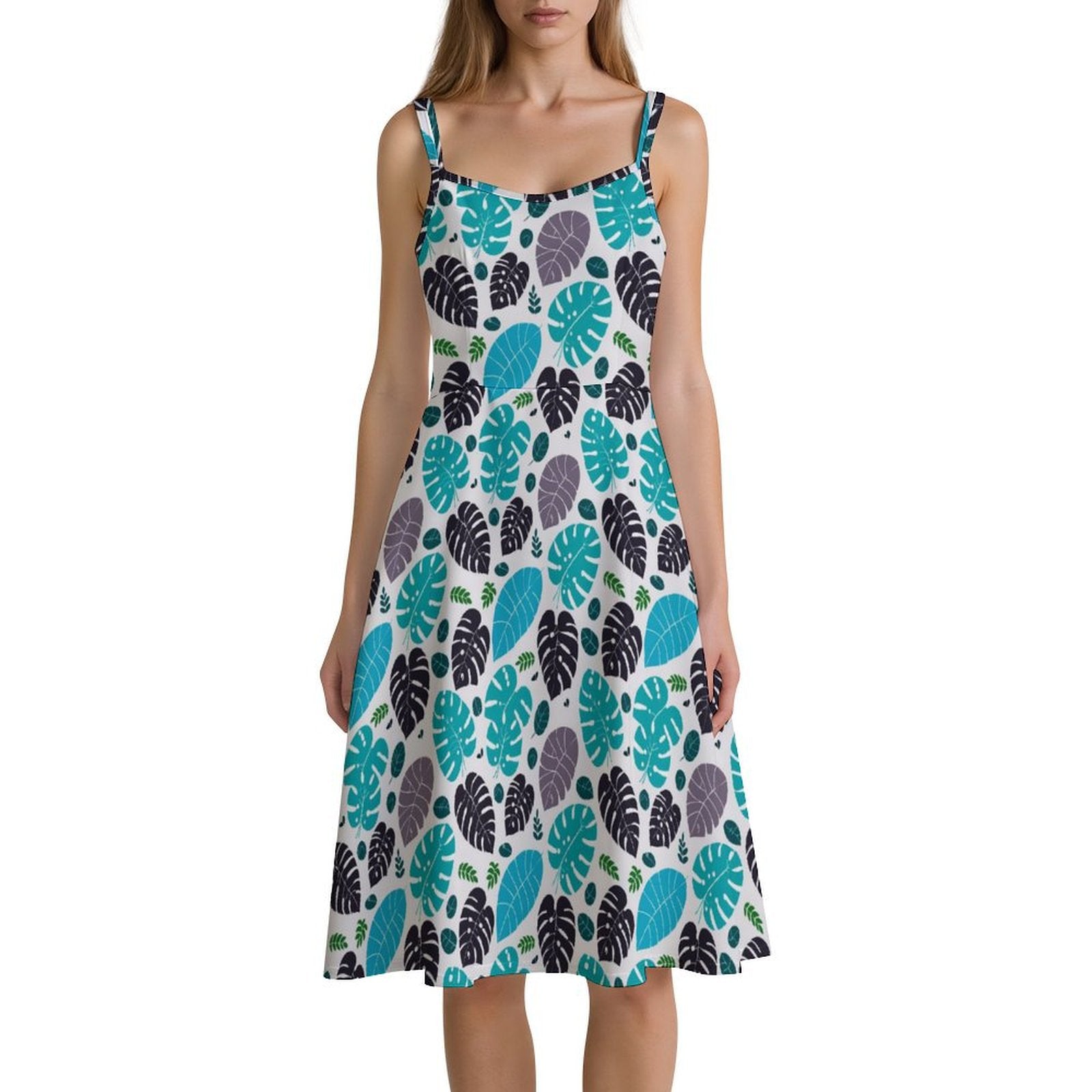 フラットなサンダルとストローハットで、リゾートの風を感じるリラックススタイルに。