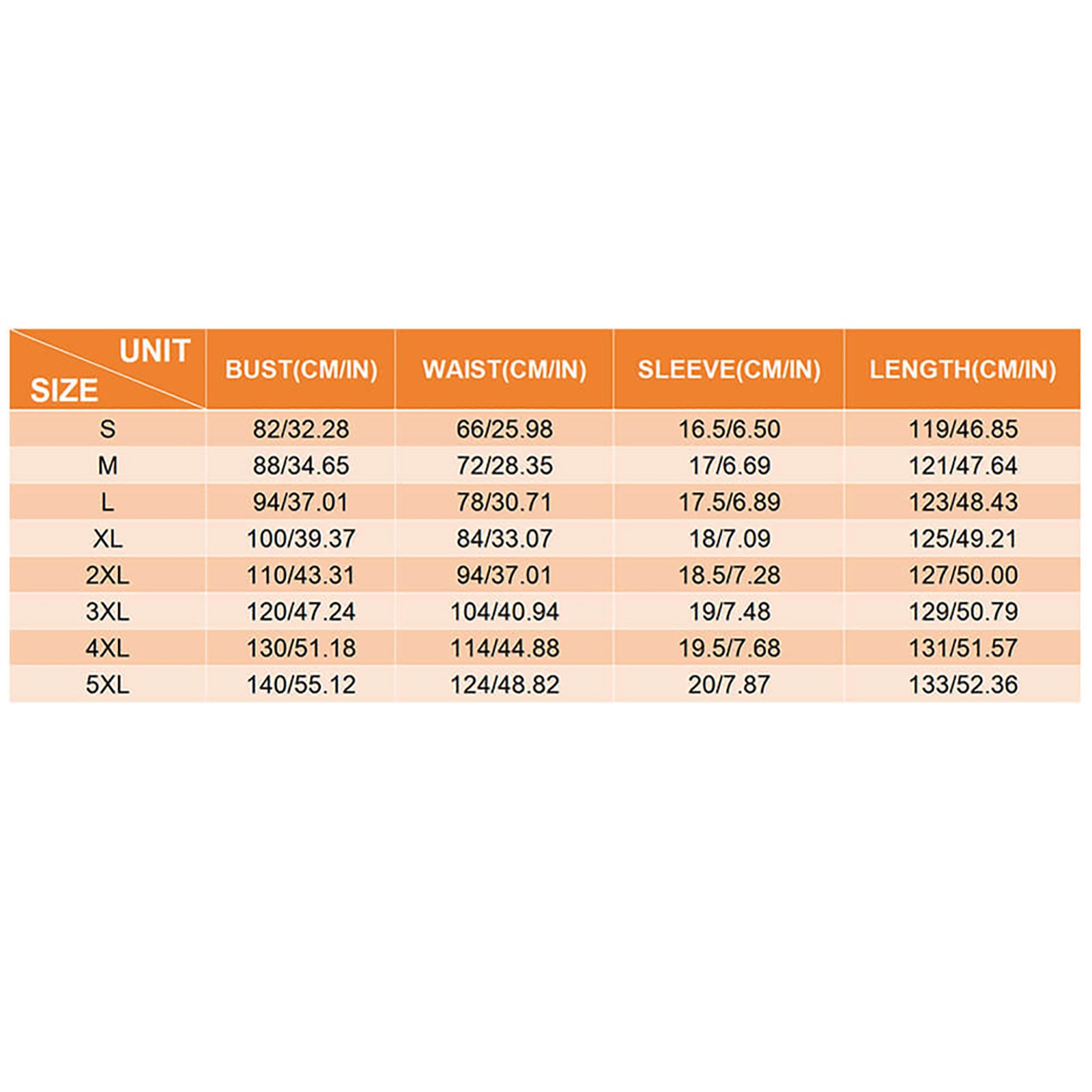 サイズ バスト (cm/in) ウエスト (cm/in) 袖丈 (cm/in) 着丈 (cm/in)